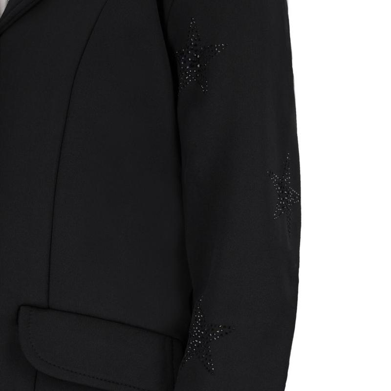 Elegancki frak ozdobiony brokatowymi gwiazdkami na rękawach.