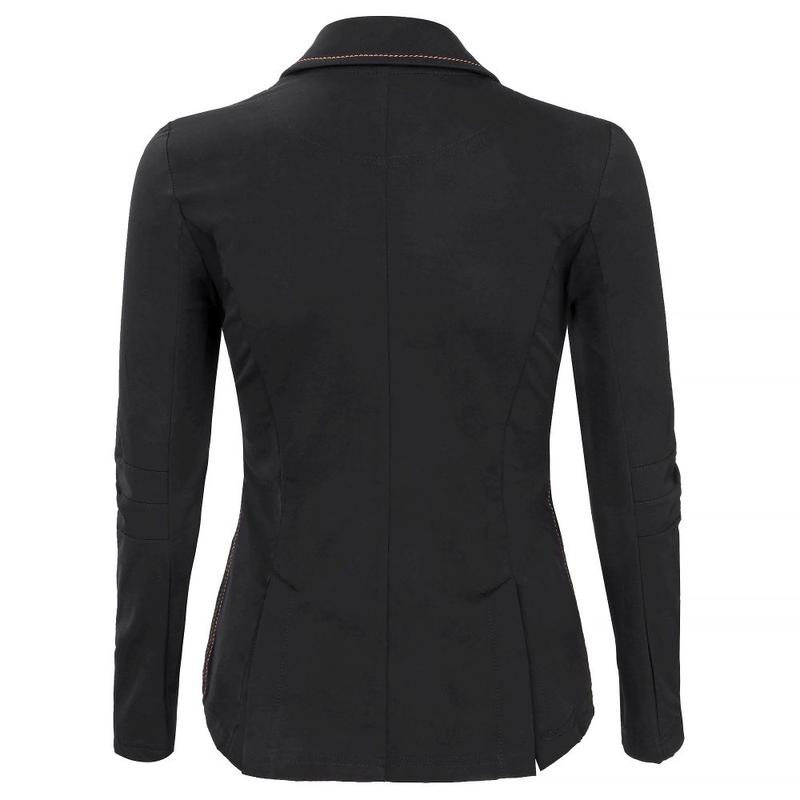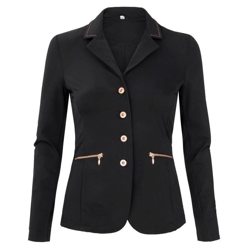 Frak Alison firmy HKM. Wykonany z oddychającego materiału. Posiada dwie kieszenie z przodu, ukryty zamek błyskawiczny za listwą guzikową.Materiał 92% poliester, 8% elastan