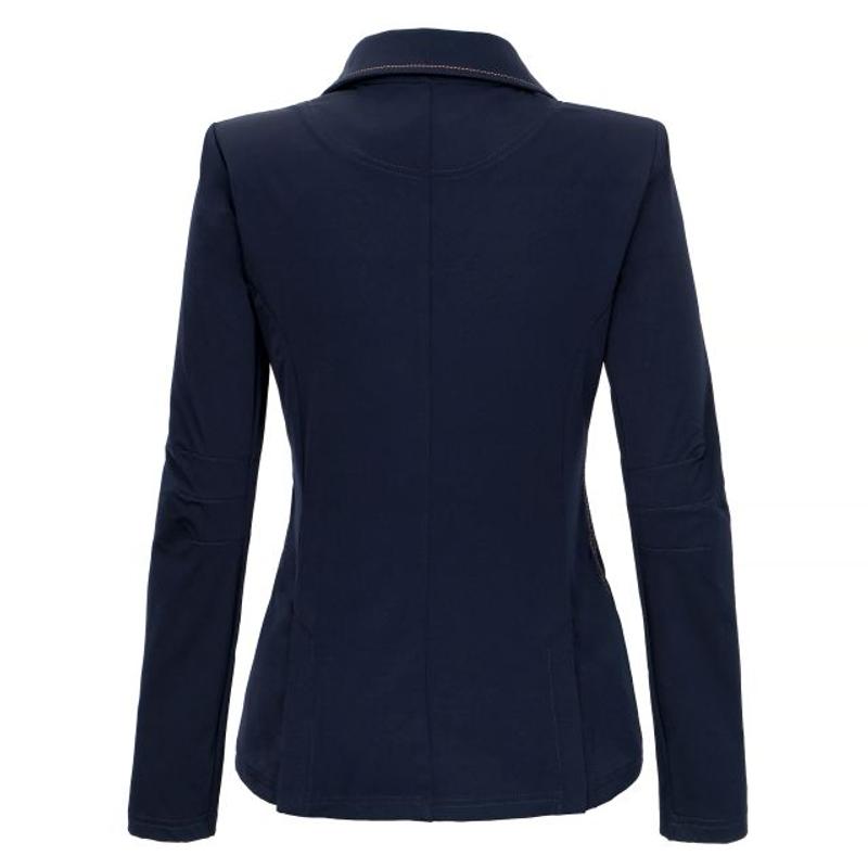 Frak damski Selection firmy Pikeur. Wykonany z oddychającego materiału i funkcjonalnej tkaniny Tech-Jersey. Pod rękawem i podszewką, tkanina siateczkowa przepuszczająca powietrze. Kieszenie z patkami i ozdobnym zamkiem błyskawicznym. Mankiet podwinięty, z nadrukiem i ozdobnymi guzikami. Zaokrąglony przód z wycięciem. Ekstrawagancka linia szwów z tyłu....
