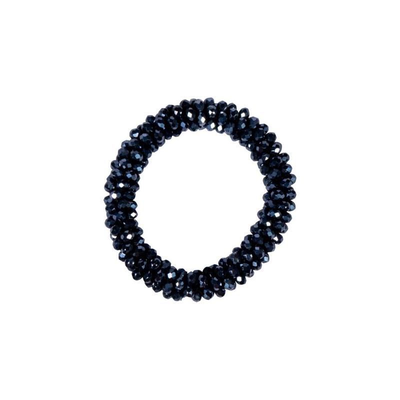 Granatowa gumka do włosów HKM to eleganckie akcesorium ozdobione drobnymi, błyszczącymi koralikami. Dobrze trzyma włosy i świetnie sprawdza się zarówno na co dzień, jak i na zawody czy bardziej formalne okazje.