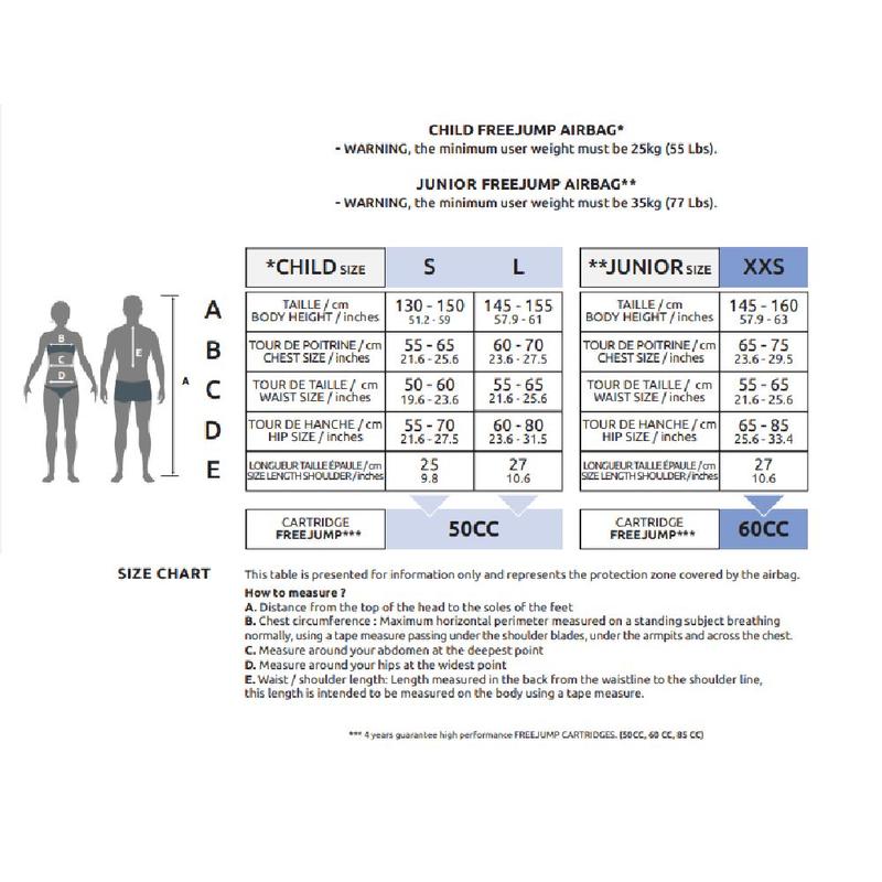 Indywidualny wkład FreejumpWybierz swoją pojemność: 50 cm3 dla poduszek powietrznych dla dzieci w rozmiarach S i L; 60 cm3 dla poduszek powietrznych: XXS Regular Fit, XS Regular Fit, XS Slim Fit, S Regular Fit, S Slim Fit, M Regular Fit, M Slim Fit, L Regular Fit; 85 cm3 dla poduszek powietrznych: L Slim Fit, XL Regular Fit i XXL Regular...