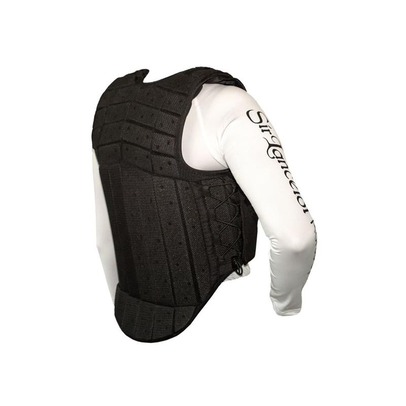 Kamizelka ochronna „TobyMax” Airflow firmy Sir Lancelot. Charakteryzuje się optymalną oddychalnością dzięki perforowanym blokom pianki i dlatego jest idealna na cieplejsze dni. Wysokiej jakości materiały, wygoda i bezpieczeństwo sprawiają, że kamizelka jest idealnym towarzyszem na koniu.
