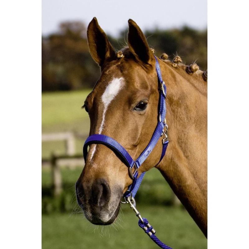 Kantar firmy Busse. Pasek nachrapnika regulowany po prawej stronie, dzięki czemu sprzączka nie przeszkadza podczas prowadzenia na uwiązie po lewej stronie.