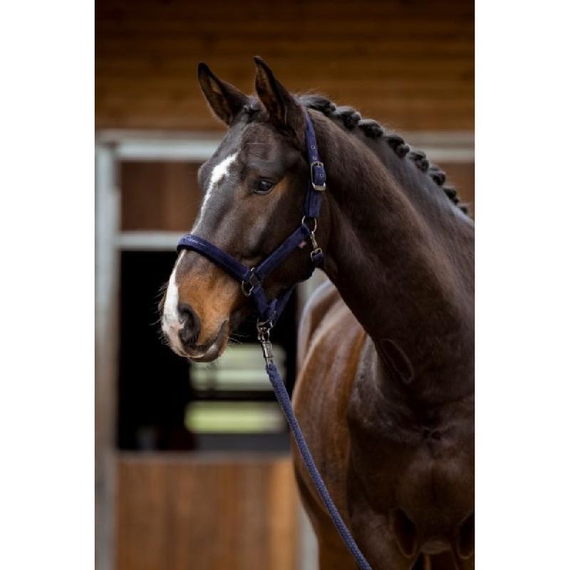 Wykonany z wytrzymałego materiału pokrytego welurem. Regulowany nachrapnik oraz pasek potyliczny w dwóch miejscach. Łatwe zamykanie kantara za pomocą karabińczyka. Wyposażone w solidne, metaliczne okucia.