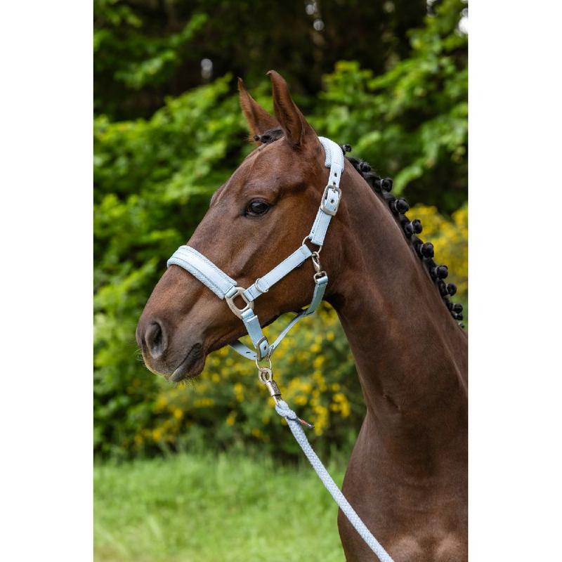 Kantar firmy Covalliero z kolekcji wiosna-lato 2024. Wykonany został z odpornego na ścieranie materiału i mocnych szwów. Posiada miękkie podszycie nachrapnika oraz paska potylicznego, regulowanych w 2 kierunkach.Wyposażony w łatwe otwieranie i zamykanie za pomocą karabińczyka oraz solidne metalowe okucia.