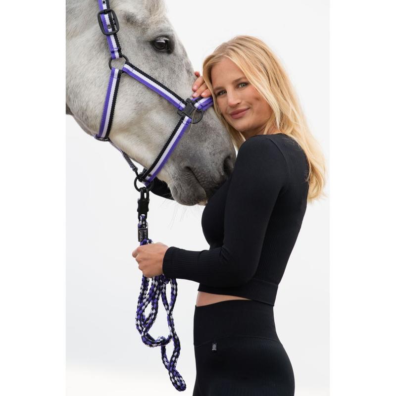 Kantar z kolekcji Eskadron Dynamic 2024. Wykonany z mocnego, trzykolorowego parcianego materiału. We wrażliwych punktach nosa i głowy podszyty miękkim materiałem, co chroni konia przed obtarciem.