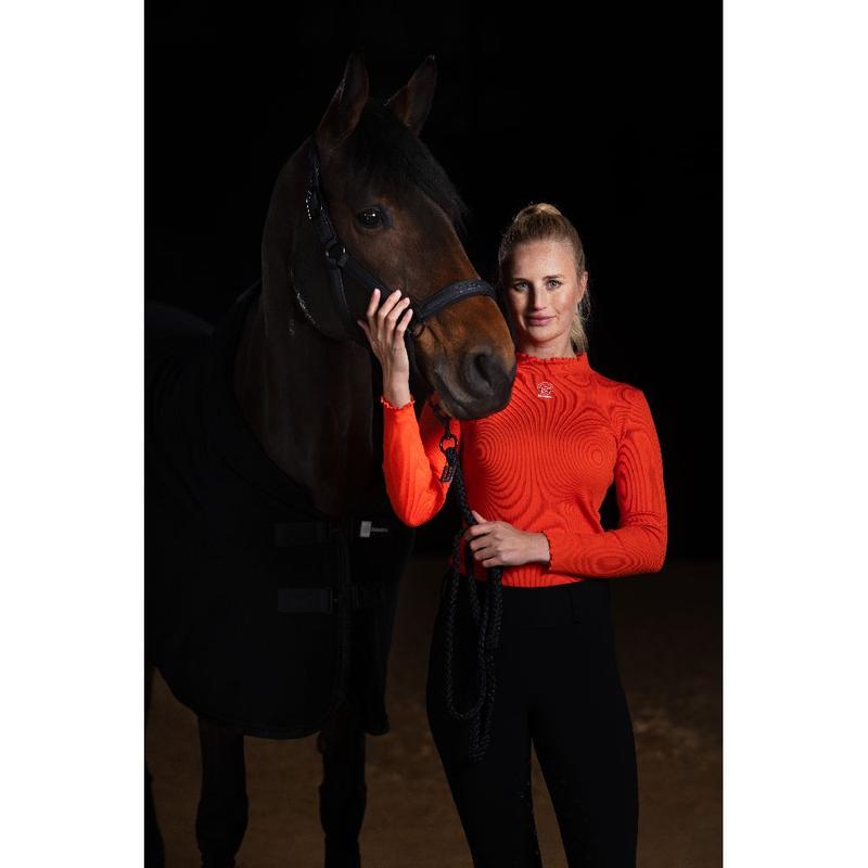 Kantar z kolekcji Eskadron Dynamic 2025. Pokryty błyszcącym materiałem, dzięki czemu doda elegancji. Wyposażona w wyściółkę typu Softshell nanachrapniku oraz pasku potylicznym. Zapinany na klamry po dwóch stronach. Okucia w kolorze czarnym.