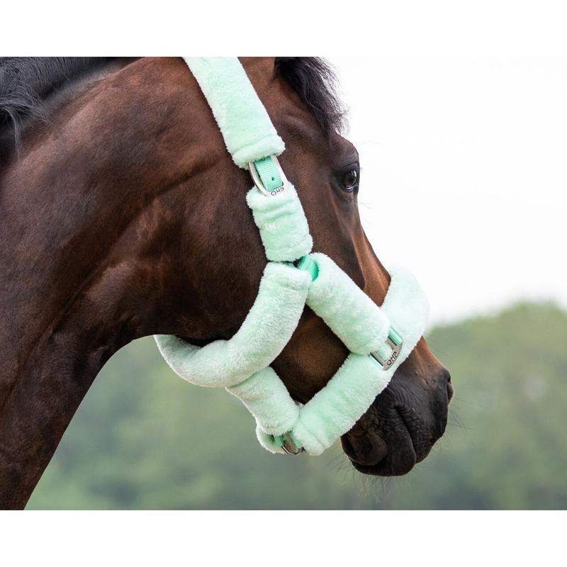 Kantar futerkowy firmy QHP. Chroni przed obtarciami konia. Posiada regulację oraz wygodne zapięcie na karabińczyk.