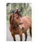 Kantar firmy HKM wykonany z wytrzymałej, odpornej na zerwanie podwójnej taśmy poliestrowej. Posiada regulacje rozmiaru w części potylicznej, okucia w kolorze srebrnym. Zapinany na zwykły karabińczyk.