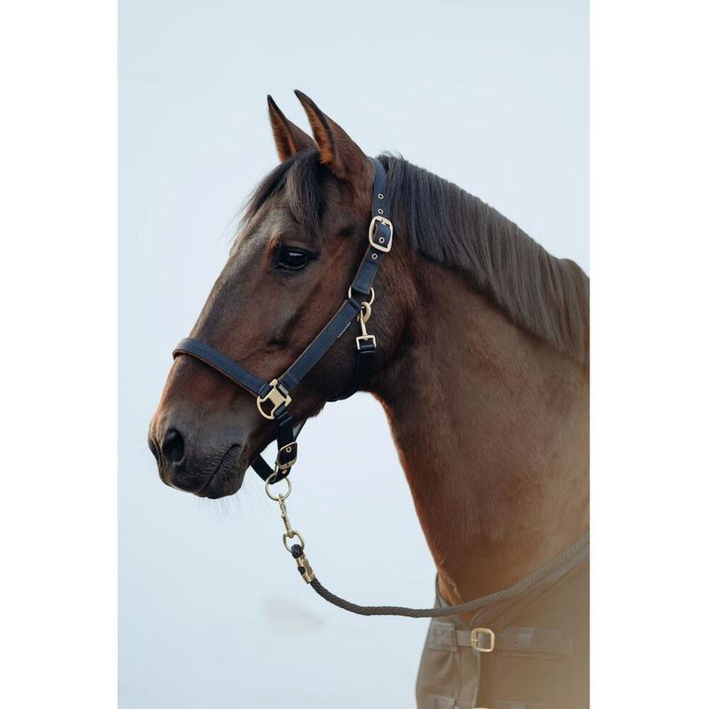 Kantar firmy Horze. Wykonany z wysokiej jakości materiału. Regulowane sprzączki pozwolą dopasować kantar do rozmiaru głowy konia, a karabińczyk z boku bezpiecznie się zapina.