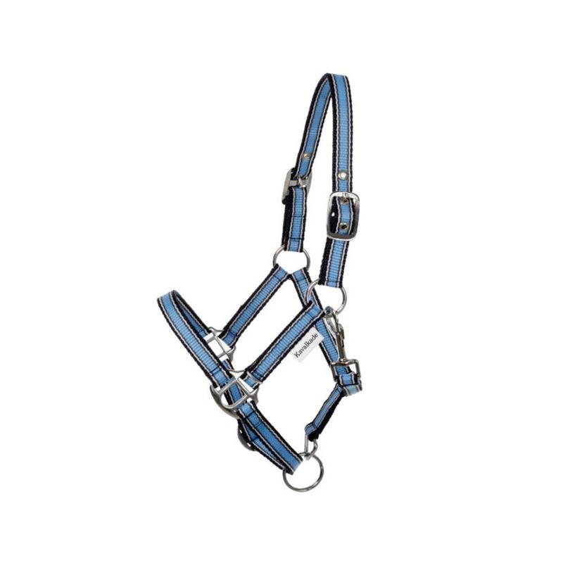 Kantar firmy Kavalkade. Aby zapewnić idealne dopasowanie, kantar można regulować po obu stronach w okolicy potylicy i na nachrapniku. Okucia są w kolorze srebrnym.