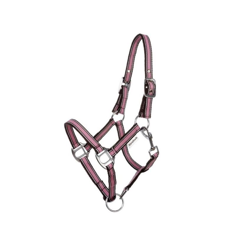 Kantar firmy Kavalkade. Wykonany z mocnej taśmy parcianej o szerokości 2 cm. Regulacja na pasku potylicznym po obu stronach dla lepszego dopasowania. Zapinany na karabińczyk. Okucia ze stali nierdzewnej w kolorze srebrnym.