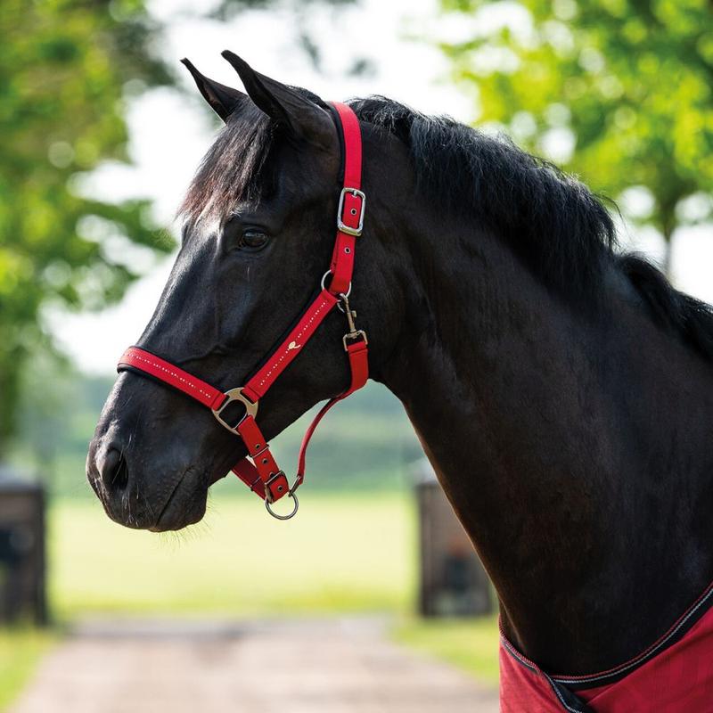 Regulowany kantar na nachrapniku i naczółku, ozdobiony cyrkoniami.