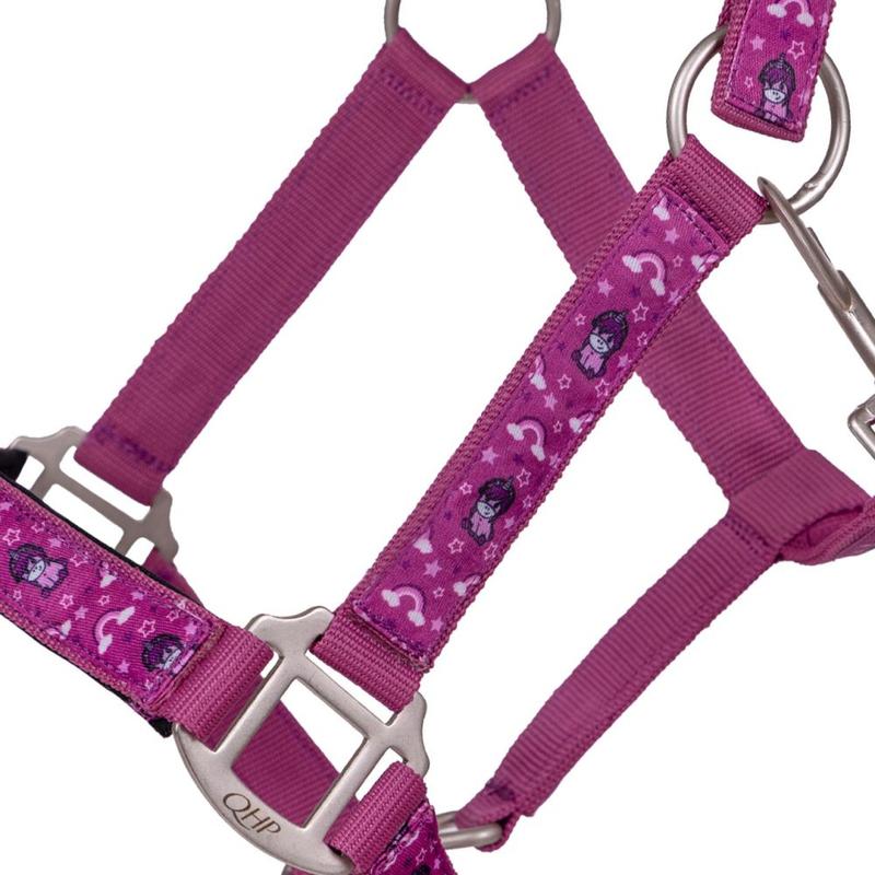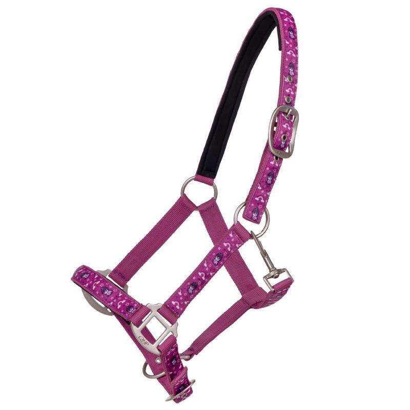 Kantar ozdobiony emotikonkami i miękko wyściełany na nachrapniku. Regulowany w dwóch punktach i wykończony subtelną spinką.