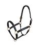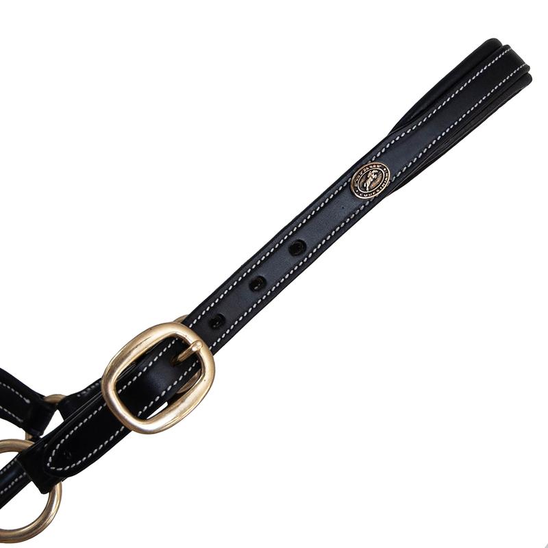 Wysokiej jakości kantar skórzany - regulowany z obu stron. Obie części są połączone ruchomym pierścieniem, dzięki czemu dobrze przylega i nie ślizga się. Kantar posiada złote okucia.