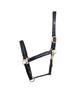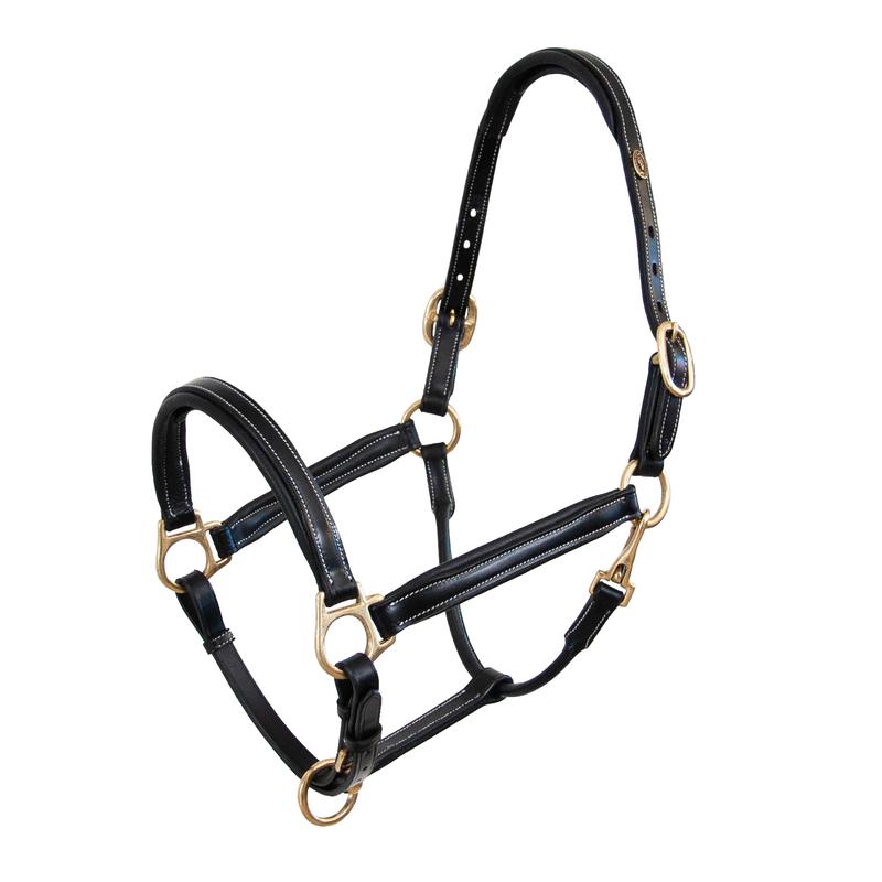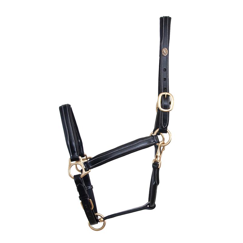 Skórzany kantar Gold firmy HKM. Posiada regulowany nachrapnik oraz część potyliczną regulowaną z obu stron, podszyty miękką skórą. Otwierany za pomocą karabińczyka i wyposażony w solidne sprzączki. Bardzo wytrzymały, odporny na niekorzystne warunki atmosferyczne.