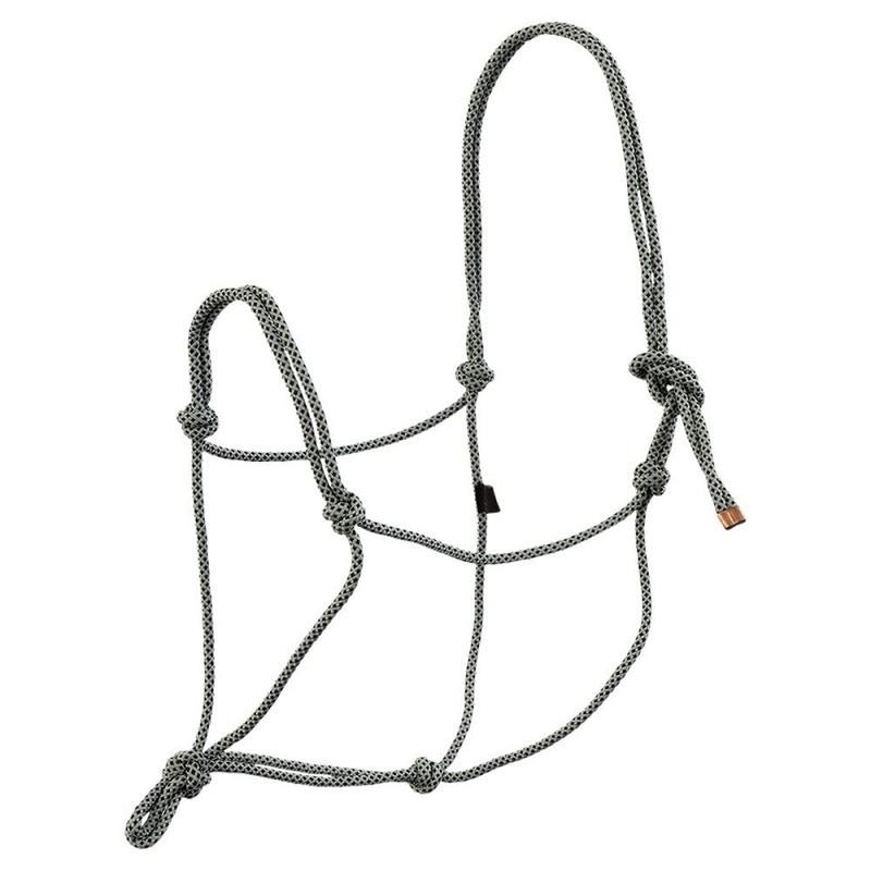 Kantar sznurowany Arizona firmy HKM. Wykonany z wytrzymałej linki polipropylenowej. Część nosowa ozdobiona plecioną linką w kontrastujących kolorach. Istnieje duża możliwość regulacji. W komplecie zawieszka do kluczy w stylu indiańskim.
