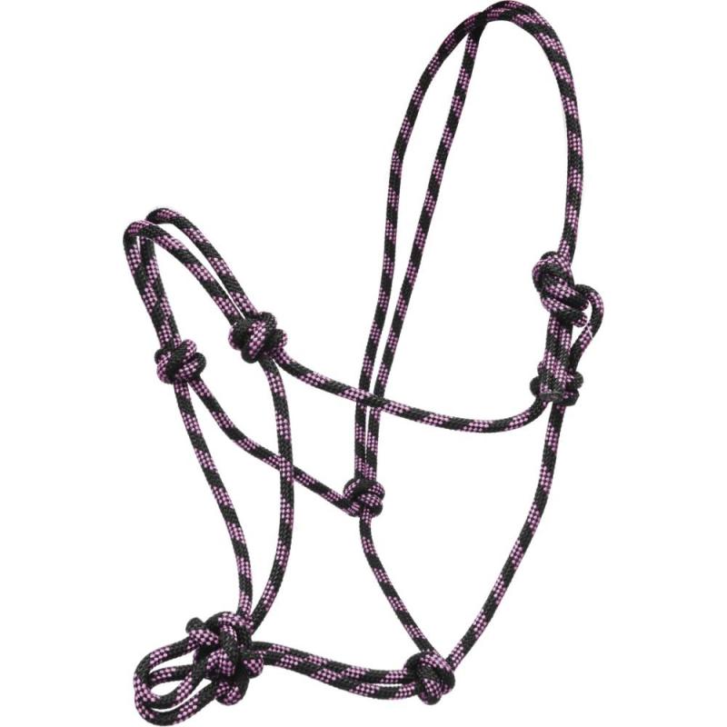 Kantar sznurowany Arizona firmy HKM. Wykonany z wytrzymałej linki polipropylenowej. Część nosowa ozdobiona plecioną linką w kontrastujących kolorach. Istnieje duża możliwość regulacji. W komplecie zawieszka do kluczy w stylu indiańskim.