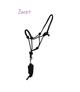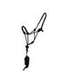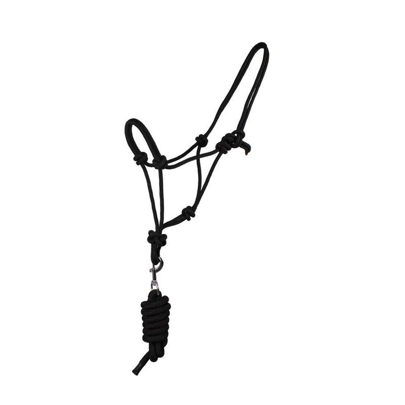Kantar sznurowany firmy QHP. Wykonany z linki polipropylenowej z ozdobnie skręconym lub szachownicowym wzorem na pasku nosowym. W komplecie z uwiązem z karabińczykiem typu snap.