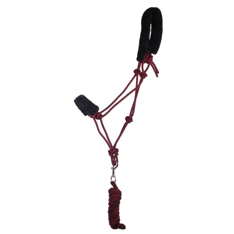 Kantar sznurowany firmy QHP. Wykonany z linki polipropylenowej. Nachrapnik i potylica obszyte miękkim, syntetycznym futerkiem. W komplecie z uwiązem z karabińczykiem typu snap.