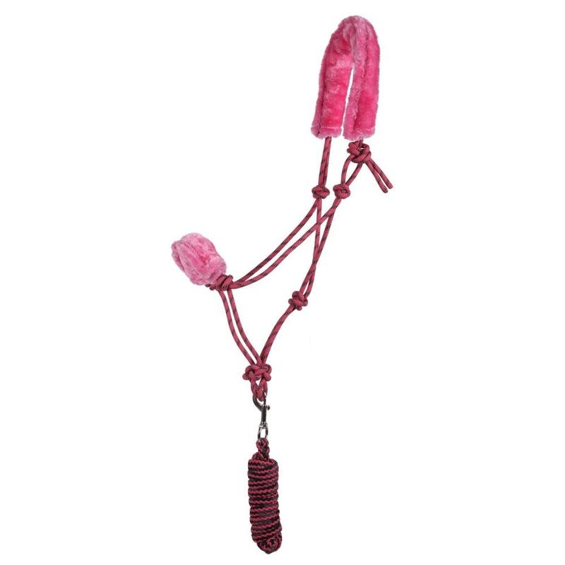 Kantar sznurowany firmy QHP. Wykonany z linki polipropylenowej. Nachrapnik i potylica obszyte miękkim, syntetycznym futerkiem. W komplecie z uwiązem z karabińczykiem typu snap.