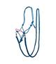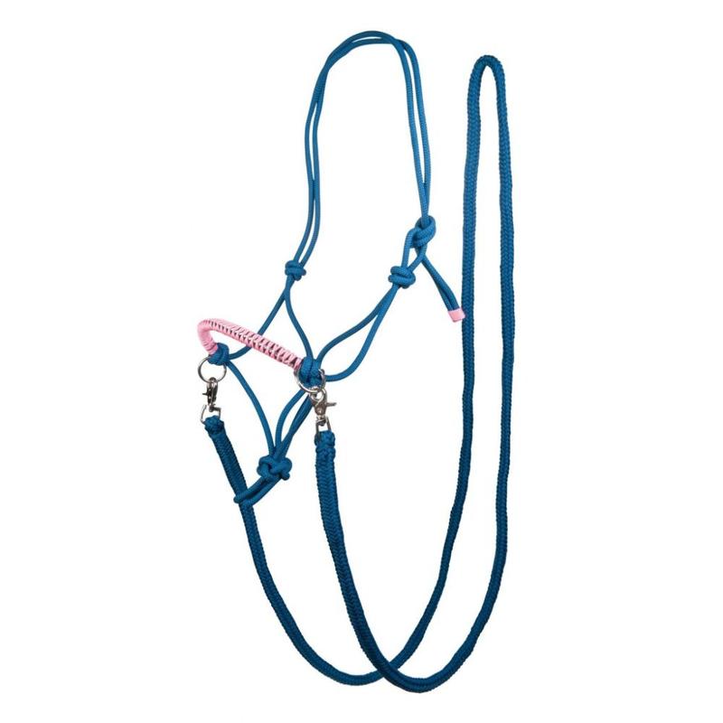 Kantar sznurkowy z wodzami Strass firmy HKM. Wykonany z wytrzymałej linki polipropylenowej. Część nosowa ozdobiona plecioną linką w kontrastujących kolorach. Istnieje duża możliwość regulacji.Wodze wykonane z grubej liny o specjalnym splocie.Zakończone sprzączkami.