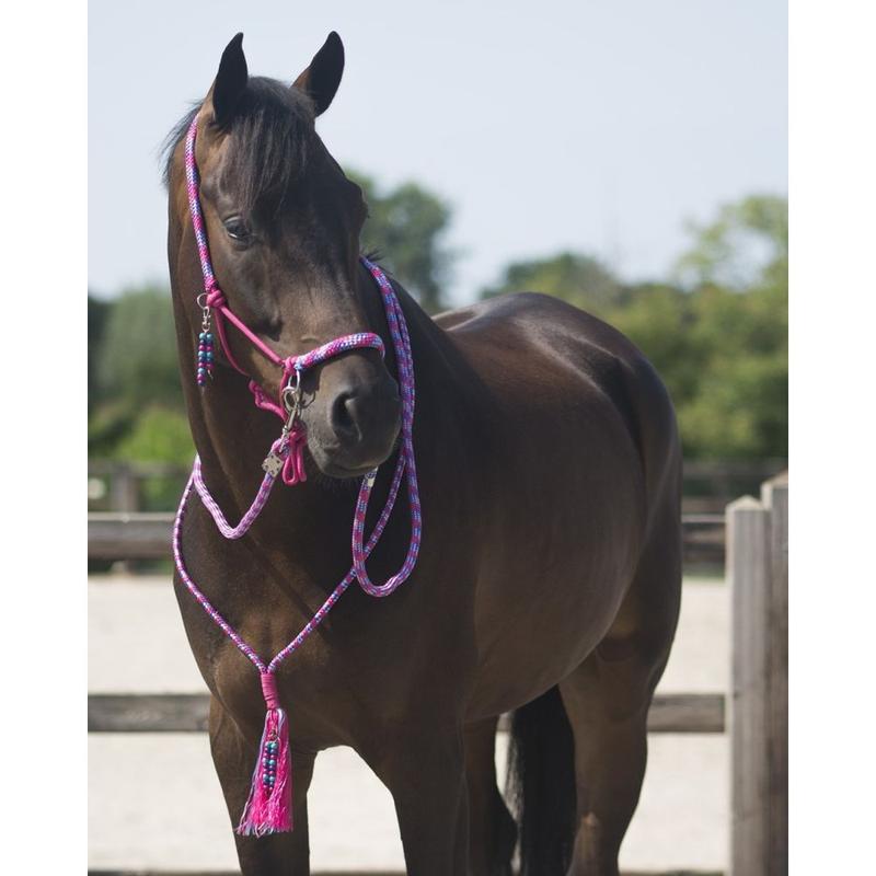 Pierścień na szyję firmy QHP. Gruba i mocna lina na szyję konia. Pierścień szyi jest umieszczony wokół szyi konia, aby jeździć bez uzdy lub jest również używany jako biżuteria.
