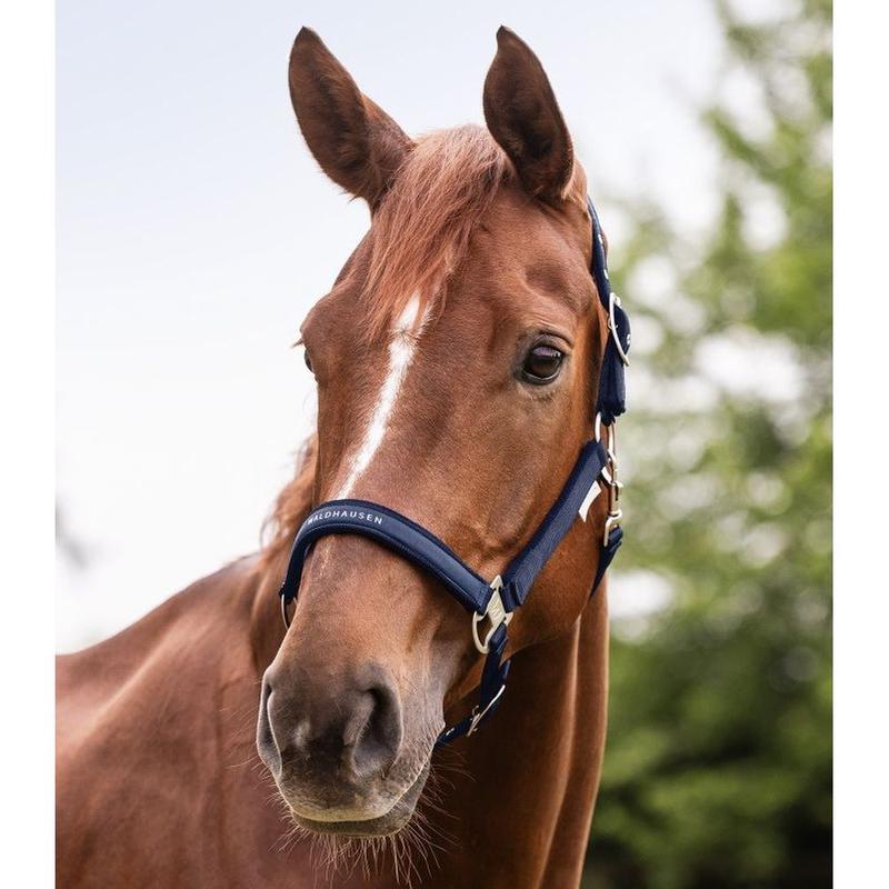 Kantar Bischofshofen firmy HKM. Elegancki, wykonany z wysokogatunkowej taśmy, odpornej na rozdarcia. We wrażliwych miejscach nosa i głowy poszyty futerkiem, które chroni przed obtarciami.