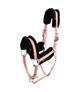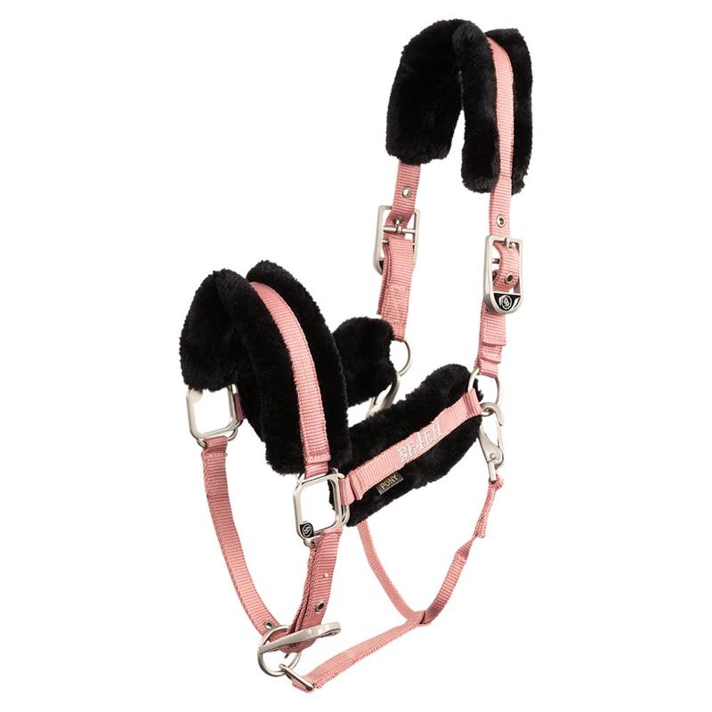 Kantar z futerkiem firmy BR. Regulowany po obu stronach, aby zachować symetrię. Posiada miękką podszewke ze sztucznego futra na nagłówku, policzku i nosie. Ozdobiony haftem po obu stronach policzków.