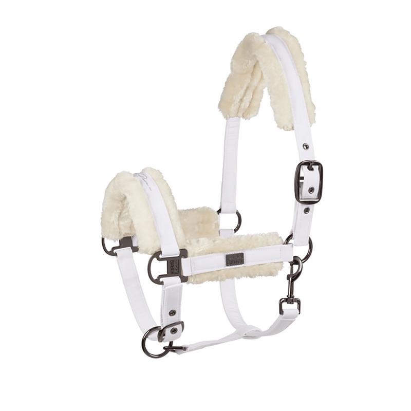 Miękko wyściełany, wielostopniowo regulowany kantar z matowymi okuciami.
