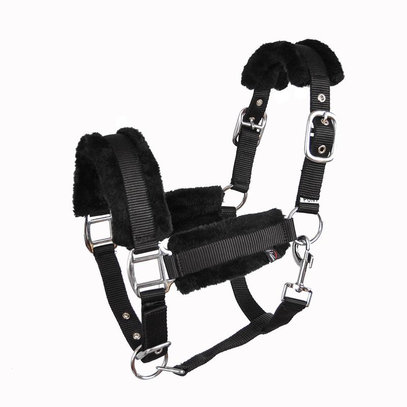 Kantar marki HKM.Wykonany z najwyższej jakości, taśmy nylonowej. Całościowo podszyty przyjemnym futerkiem, doskonały dla wrażliwych koni. Posiada potrójną regulacje wielkości. Spinany na karabińczyk. Sprzączki koloru srebrnego.