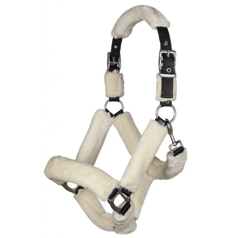 Kantar marki HKM.Wykonany z najwyższej jakości, taśmy nylonowej. Całościowo podszyty przyjemnym futerkiem, doskonały dla wrażliwych koni. Posiada potrójną regulacje wielkości. Spinany na karabińczyk. Sprzączki koloru srebrnego.