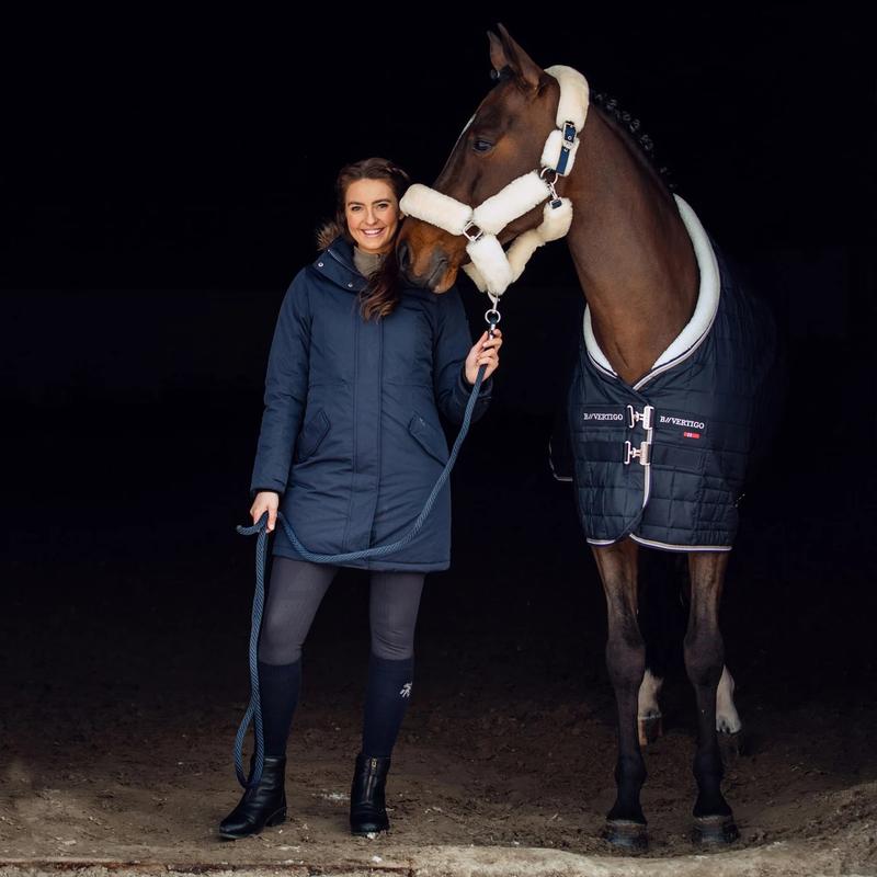 Kantar jest w całości pokryty mięciutką w dotyku imitacją owczego futerka, dzięki czemu nie ma sobie równych jeśli chodzi o wygodę. Kantar Alaska łatwo zapina się na karabińczyk. Rozmiar możesz wyregulować za pomocą sprzączki na pasku potylicznym. Całość uzupełniają eleganckie satynowane sprzączki.