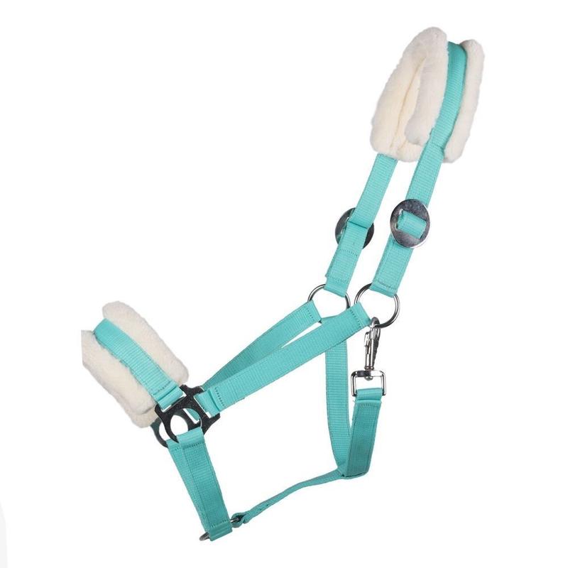 Kantar z futerkiem firmy QHP. Wykonany z wytrzymałej taśmy, podszyty miękkim futerkiem syntetycznym w naturalnym kolorze. Posiada możliwość regulacji części potylicznej. Wyposażony w solidne okucia w srebrnym odcieniu.