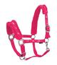Kantar firmy HKM. Wykonany z mocnej taśmy nylonowej. Podszyty miękkim, syntetycznym futerkiem. Posiada możliwość regulacji w części potylicznej i nosowej. Pasek podgardla zapinany na karabińczyk. Okucia w kolorze rosegold.Skład materiału 100% polipropylen.
