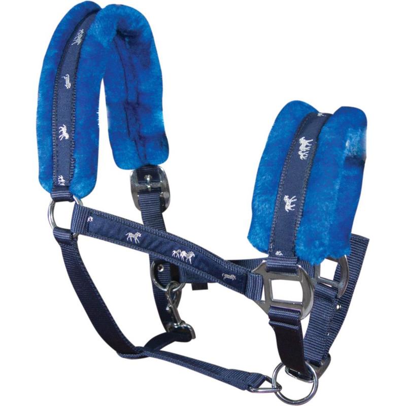 Kantar York Softy. Posiada bardzo miękkie, syntetyczne futerko. Taśmy zostały ozdobione naszywkami ze srebrnymi konikami. Możliwość regulacji w części potylicznej i nosowej.