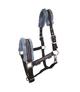 Kantar York - podszyty miękkim futerkiem, regulowany nachrapnik oraz pasek potyliczny po obu stronach głowy dają doskonałą możliwość dopasowania. Ozdobiony napisem i cyrkoniami. Okucia w satynowym kolorze.