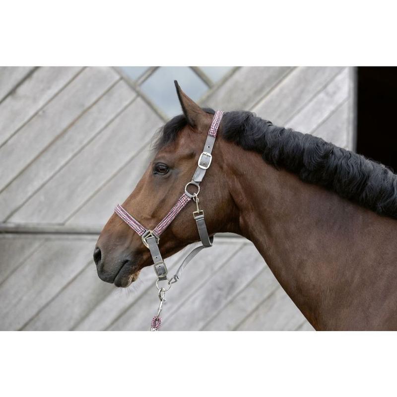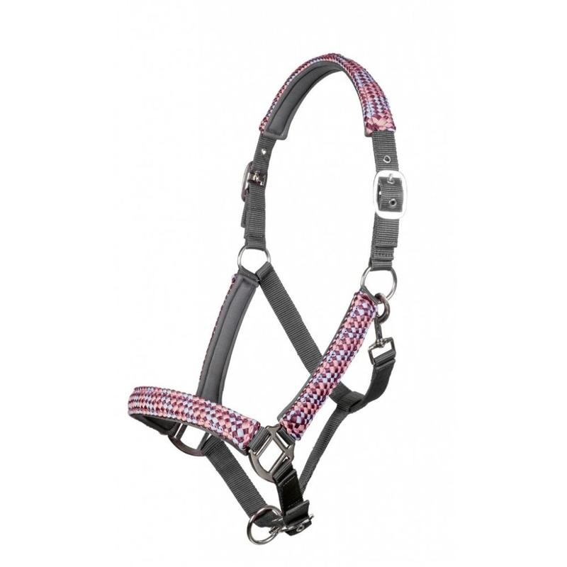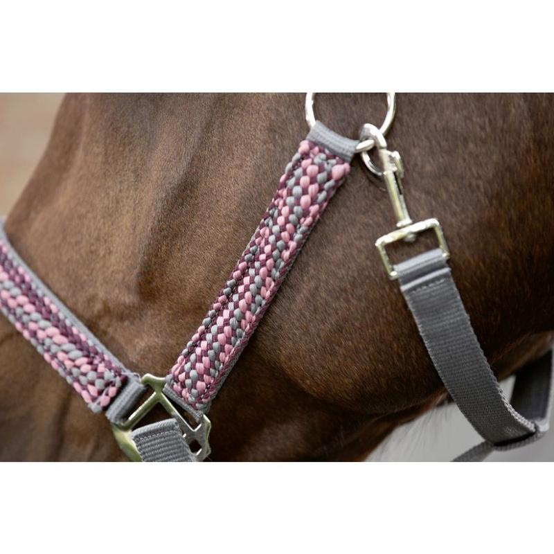 Miękko wyściełany, wielostopniowo regulowany kantar z matowymi okuciami.
