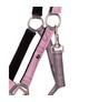 Luksusowy komplet z efektownym wzorem. Miękko wyściełany. Srebrne metalowe okucia . Zapięciem na zatrzask.