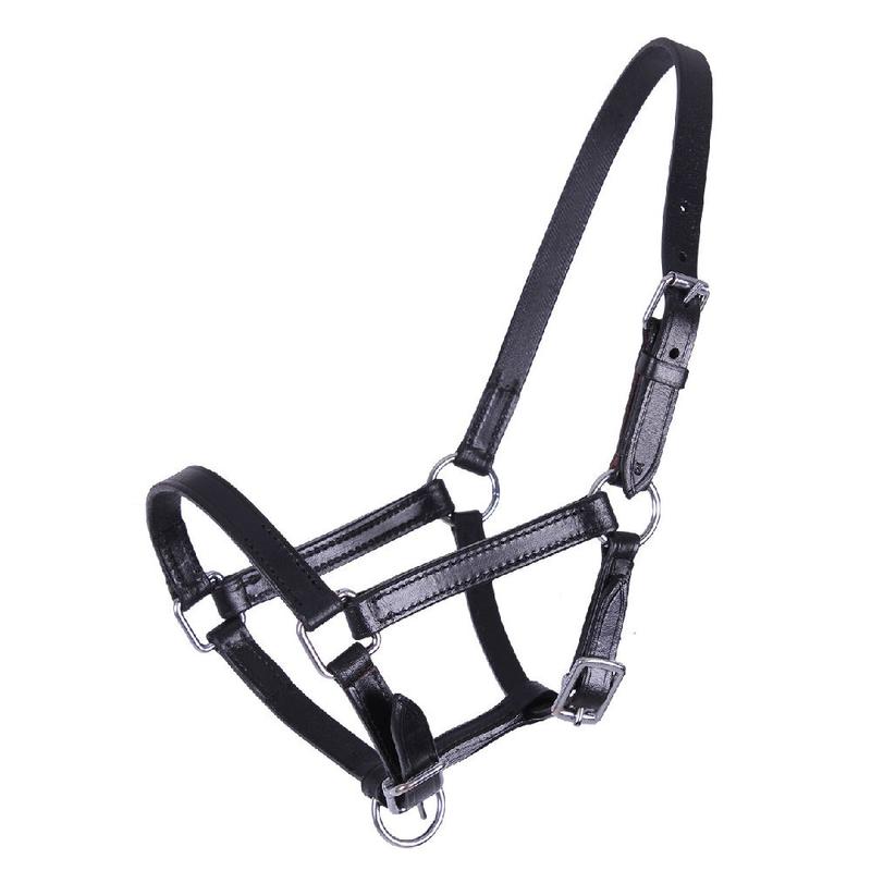 Skórzany kantar Gold firmy HKM. Posiada regulowany nachrapnik oraz część potyliczną regulowaną z obu stron, podszyty miękką skórą. Otwierany za pomocą karabińczyka i wyposażony w solidne sprzączki. Bardzo wytrzymały, odporny na niekorzystne warunki atmosferyczne.