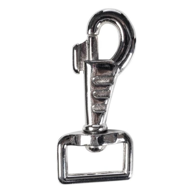 Karabińczyk bezpieczny firmy Kerbl. Pasujący do wszelkiego rodzaju lonży, uwiązów oraz lin. Wykonany z metalu ocynkowanego. Długość około 14mm.