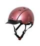 Kask BR Theta Plus Painted Glitter. Ten elegancki kask jeździecki BR Omega Glamourous to prawdziwy must-have! Brokatowy top 3D znajduje się nieco wyżej na szczycie skorupy, co pwoduje świetny efekt wizualny. Dodatkowo kask wykończony jest małymi ien elegancki kask z brokatowym wierzchem, różowozłotym wykończeniem i dużym daszkiem to prawdziwy przyciągacz...