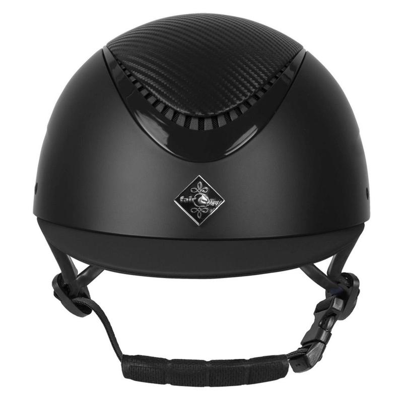 Kask firmy HKM.Posiada otwory wentylacyjne oraz system pokrętła, który dopasowuje rozmiar. Wykonany z włókna węglowego.Spełnia europejską normę EN 1384: 2023.W zestawie pakowany z workiem.