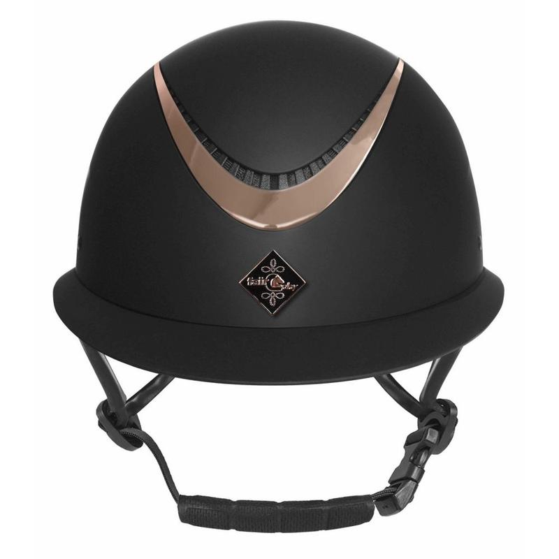 Nowoczesny, kask jeździecki, bardzo wygodny dzięki wkładce z pianki memory. Pokrętło regulacji dopasowującej kask do obwodu głowy. 3-punktowy system regulacji. Efektywny, ale dyskretny system wentylacji (otwory wentylacyjne z przodu i z tyłu).