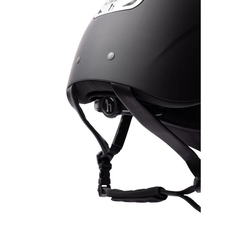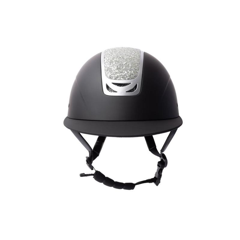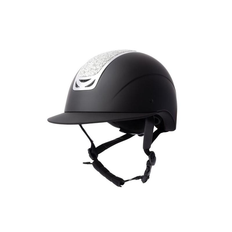 Kask Arix II firmy Horze. Wykonany z wysokiej jakości tworzywa. Powłoka wentylacji sprawia, że ten kask jest inteligentną i bezpieczną opcją. Jest lekki, a jednocześnie wysoce ochronny. Kryształowe panele z brokatem na zewnętrznej skorupie kasku dodają elegancji. Szeroki daszek zapewnia dodatkową osłonę. System pokręteł umożliwia idealne dopasowanie.