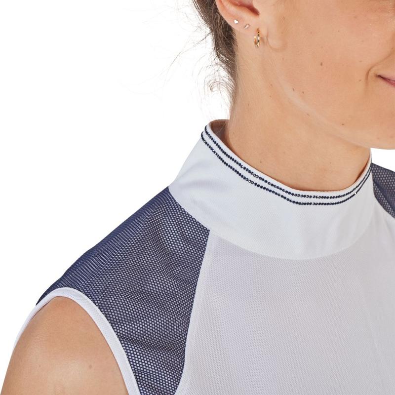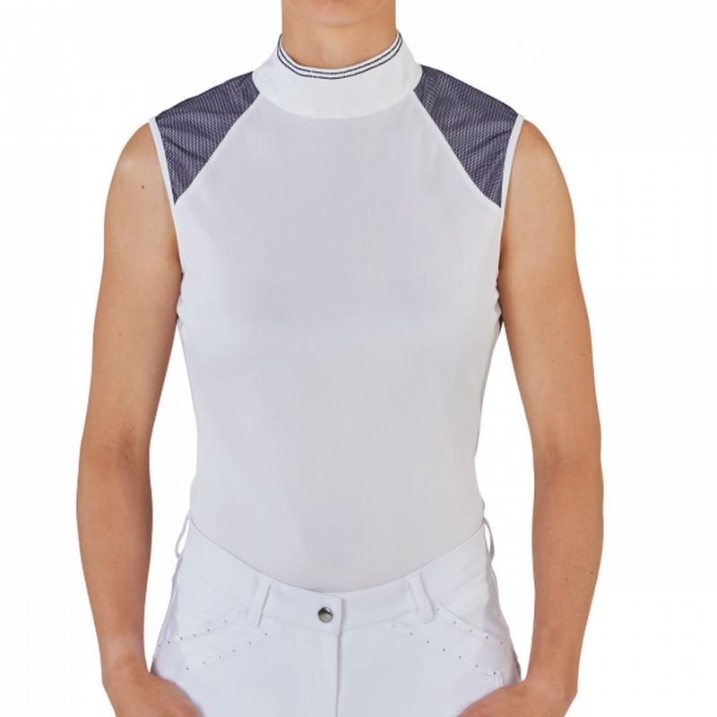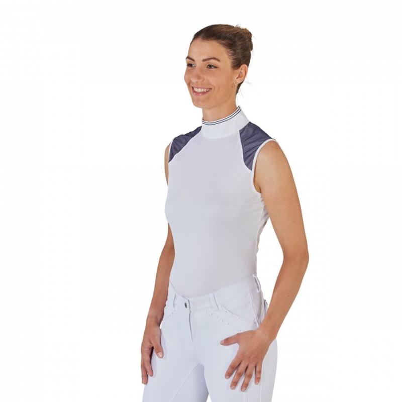 Koszulka konkursowa bez rękawów damska Busse Salea biało-granatowa
