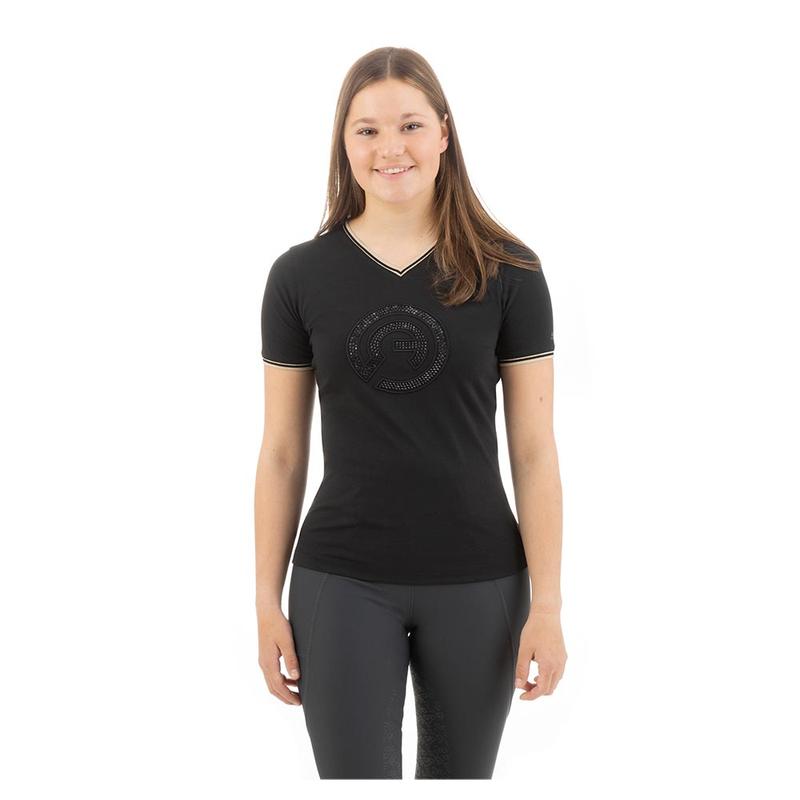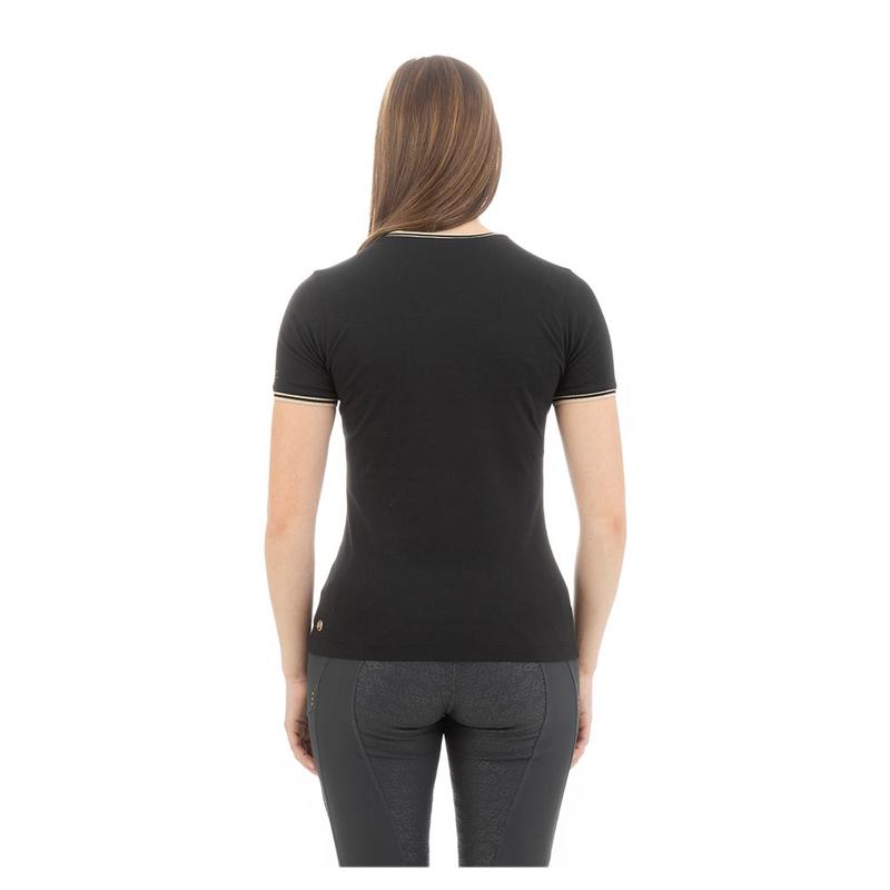 Koszulka zawiera dekolt w serek, zakończenia dołu rękawów i dekoltu prążkowanymi ściągaczami.