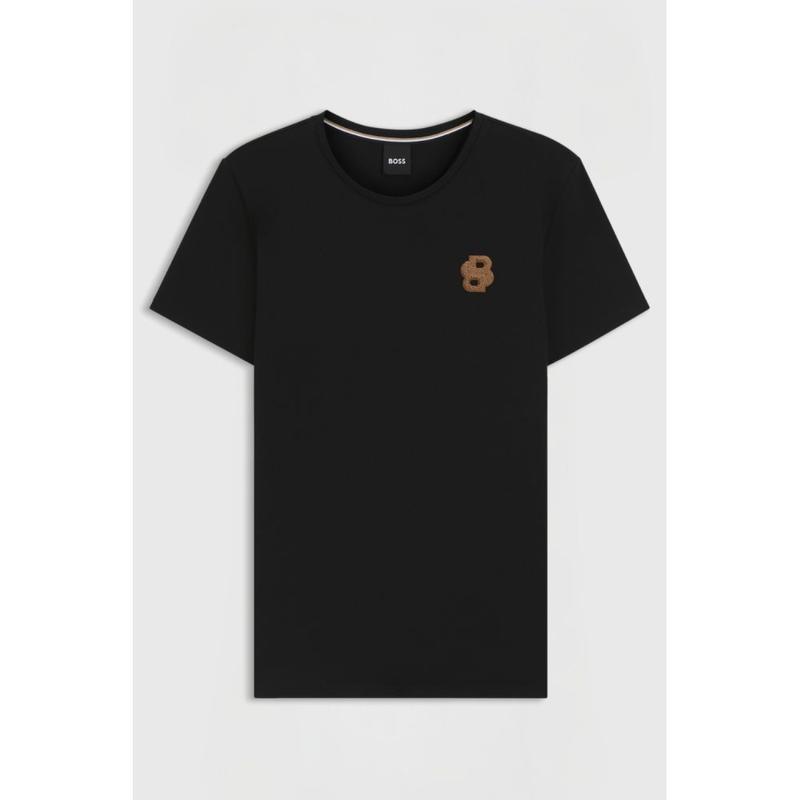 Koszulka z krótkim rękawem i okrągłym dekoltem, haftowaną naszywką z frotte, podwójnym B na lewej piersi i małą flagą jeździecką BOSS w bocznym szwie.