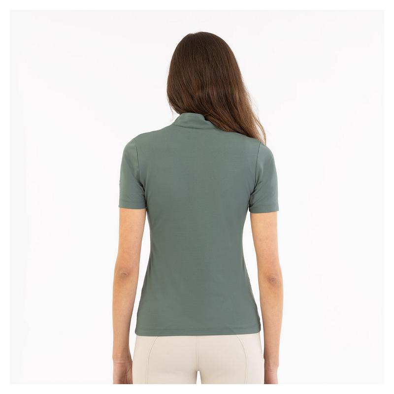 Koszulka damska firmy BR. Wykonana z rozciągliwego materiału, idalnie podkreślającego sylwetkę. Posiada stójkę z zapięciem na suwak.