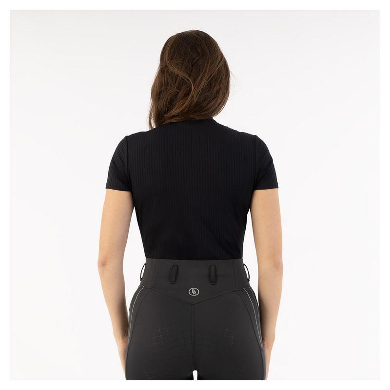 Koszulka damska firmy BR. Wykonana z rozciągliwego materiału, idalnie podkreślającego sylwetkę. Posiada stójkę z zapięciem na suwak.
